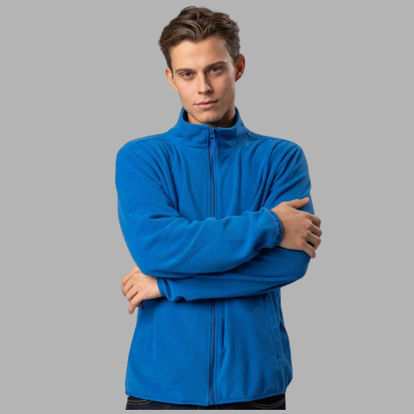 100% poliestere micropile. Pile con zip intera tessuto anti-pilling, nastro di rinforzo al collo, 2 tasche laterali con cerniera, polsini elasticizzati e orlo con coulisse.